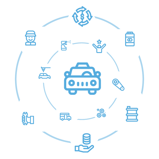 Trabalhamos com produtos para manutenção do motor como aditivos de radiador e desengripante em geral, e também com produtos para limpeza e conservação do automóvel como silicones.